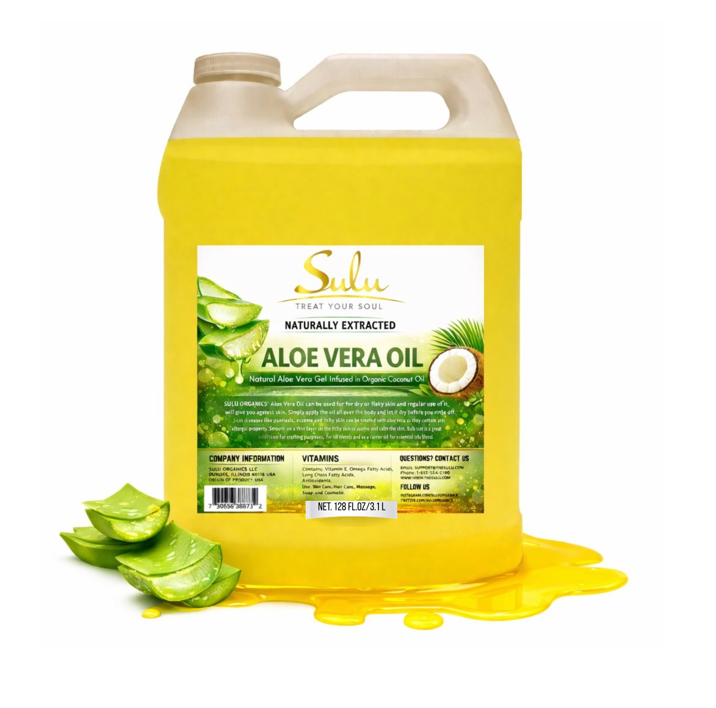 Introducing 1 Gallon 100% Pure and All Natural Aloe Vera Oil – an all-in-one natural remedy crafted by infusing Aloe Vera Gel into organic coconut oil. This potent oil offers a longer shelf life than fresh aloe gel, ensuring you always have reliable skin and hair care at your fingertips.