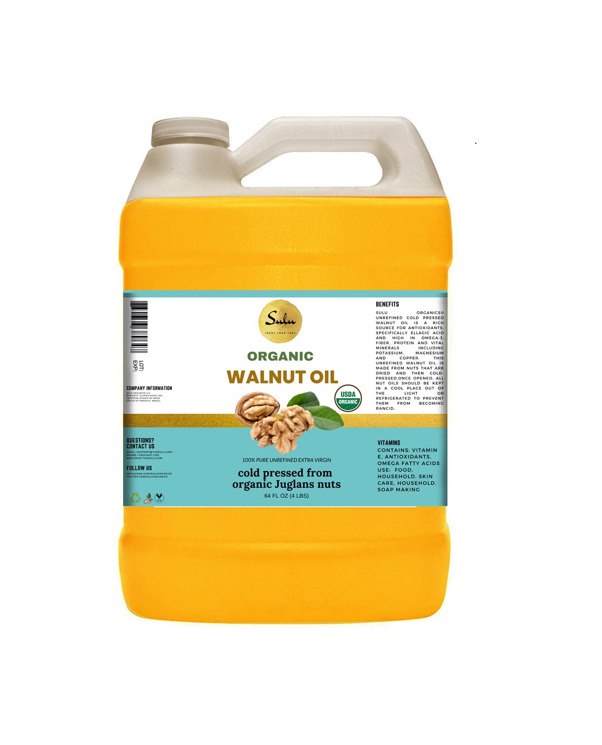 4 lbs CERTIFIED ORGANIC COLD PRESSED UNREFINED VIRGIN WALNUT OIL