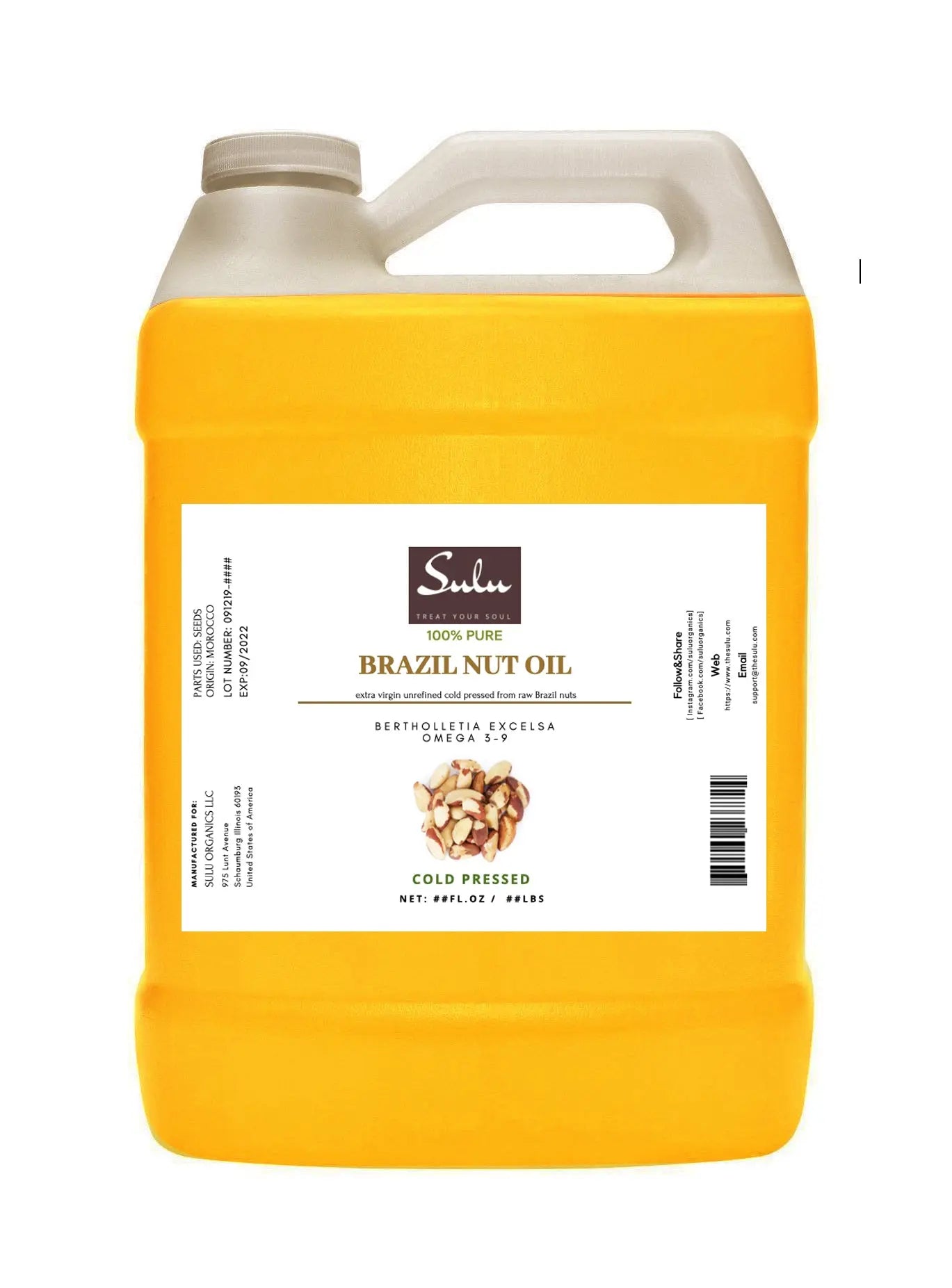 7 LBS Extra Virgin Fresh Brazil Nut Oil Cold Pressed Unrefined