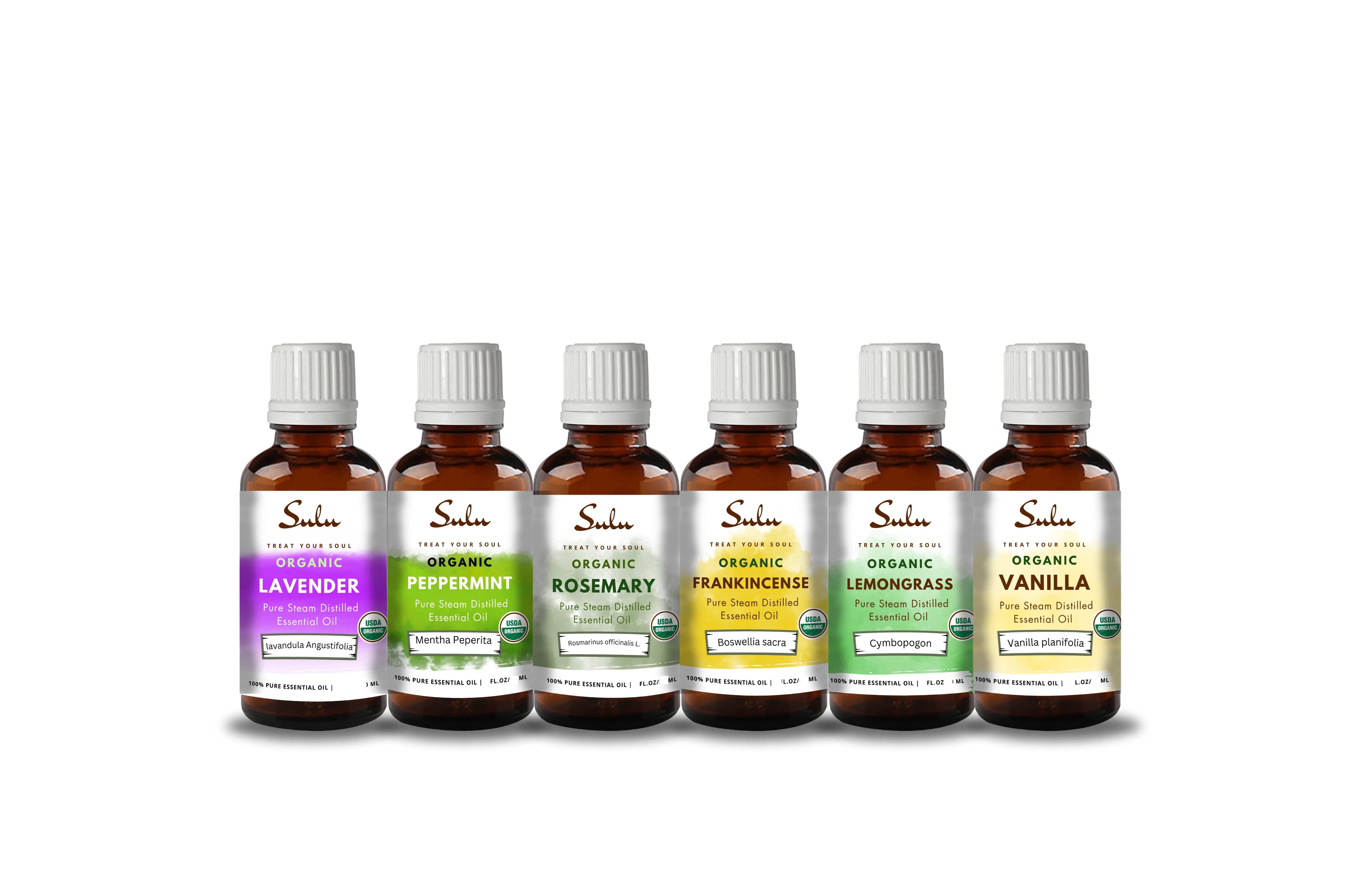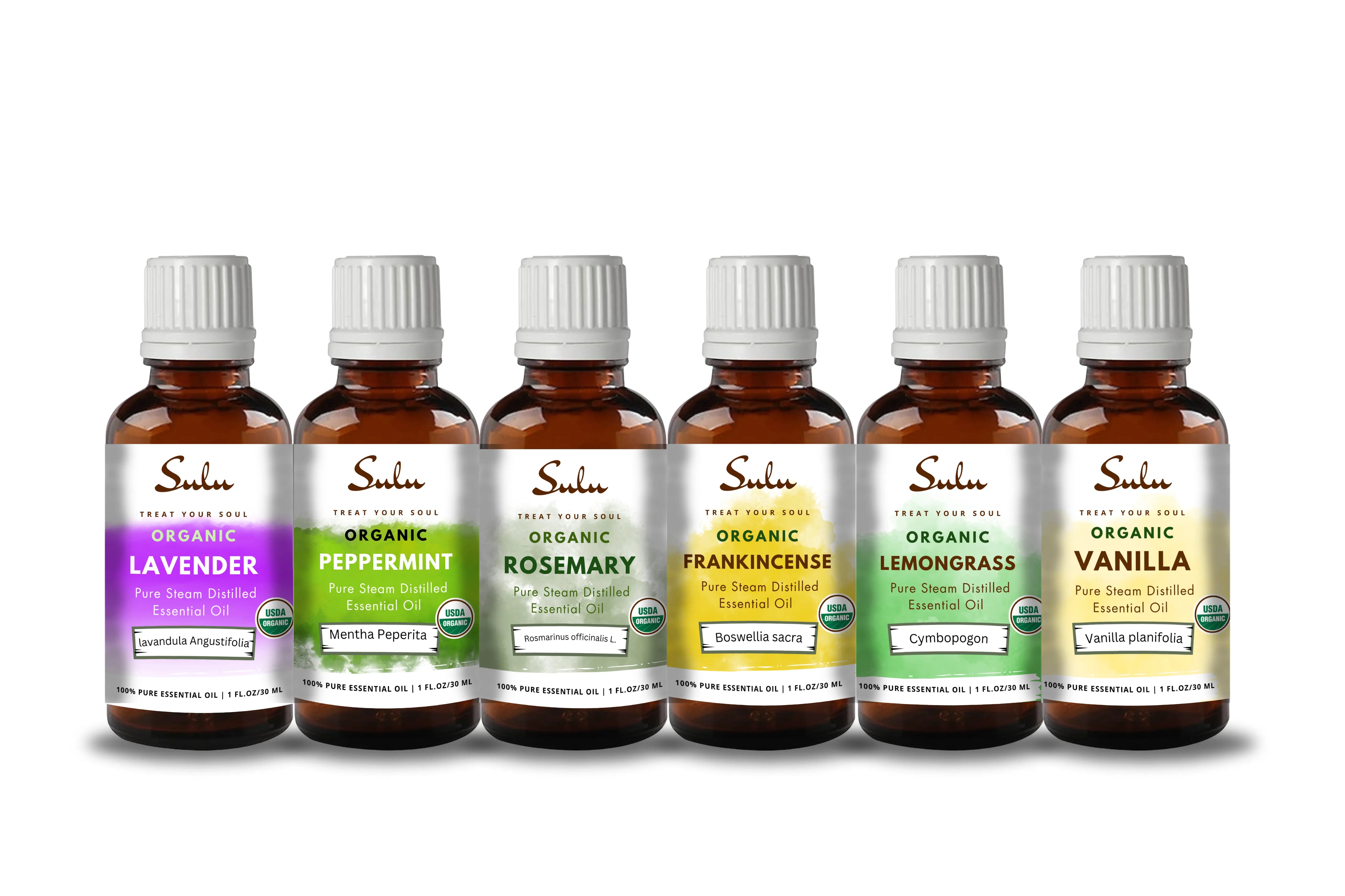 SET OF 6 100% PURE ORGANIC STEAM DISTILLED ESSENTIAL OILS